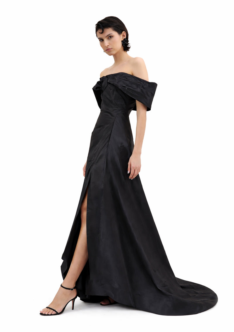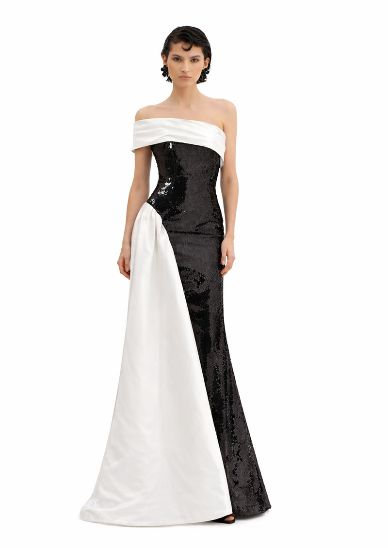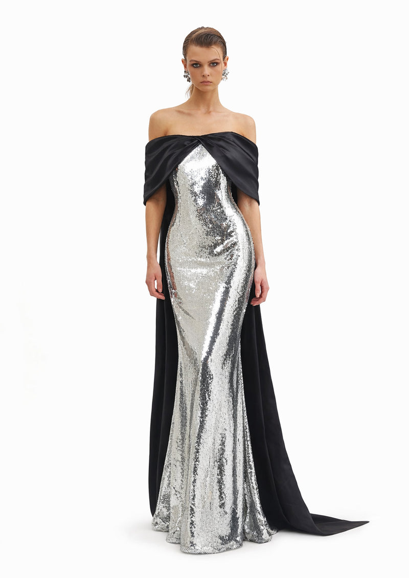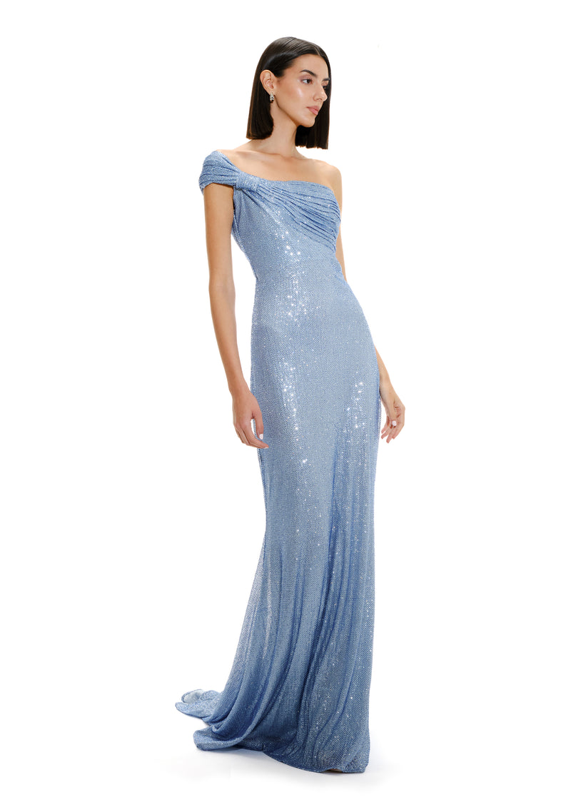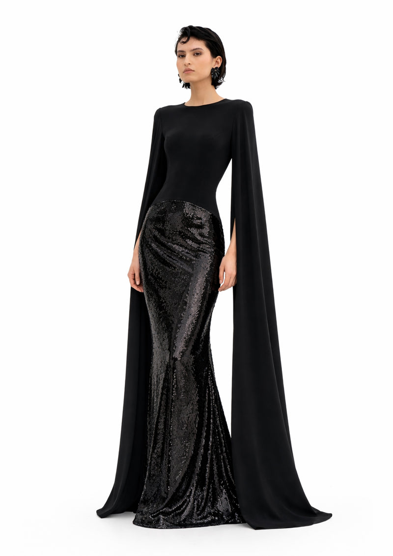 SEQUIN GOWN WITH BOW SLEEVES