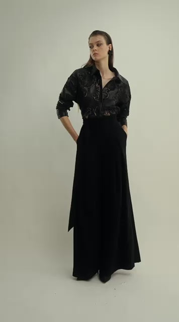 Flowing with grace, these high-waist palazzo pants offer a wide-leg silhouette that moves beautifully with every step. Perfect for elevating your wardrobe with timeless sophistication and effortless comfort.