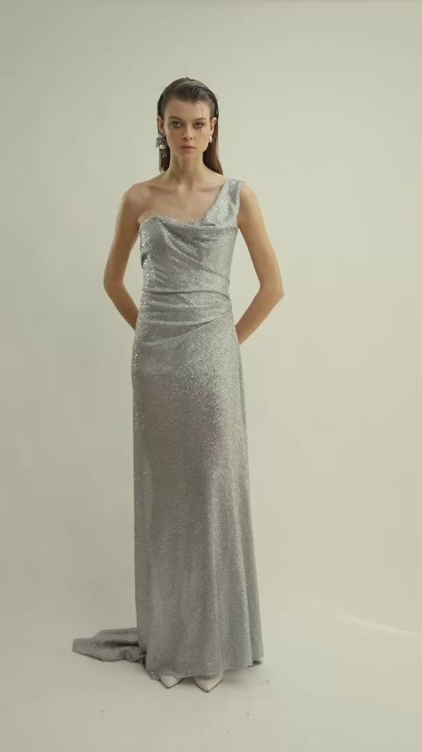 MOONLIT CRYSTAL MAXI MONOSHOULDER DRESS