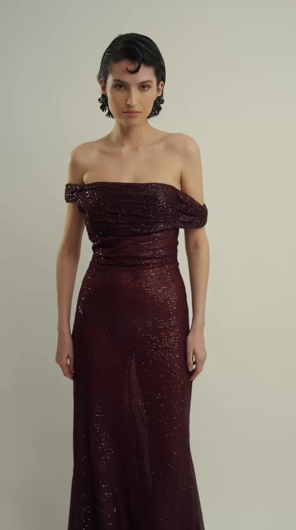 OFF-THE-SHOULDER CRYSTAL MAXI DRESS