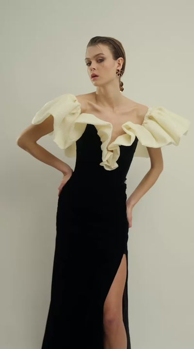 Sparkling with crystal stardust embellishments, this mini dress features a graceful draped silhouette and an asymmetrical design that adds modern allure. A captivating choice for evenings that call for radiant sophistication and effortless style.