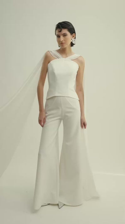 These high-waist pants feature a flattering flared fit that elongates the silhouette with effortless style. A timeless piece that combines comfort and sophistication for both day and evening looks.